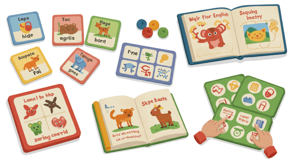 - 多様な学習手法:絵本、CD、DVD、カード、アプリなど、さまざまなメディアを使って学習できるため、視覚、聴覚、触覚を活かして多角的に学ぶことができます。